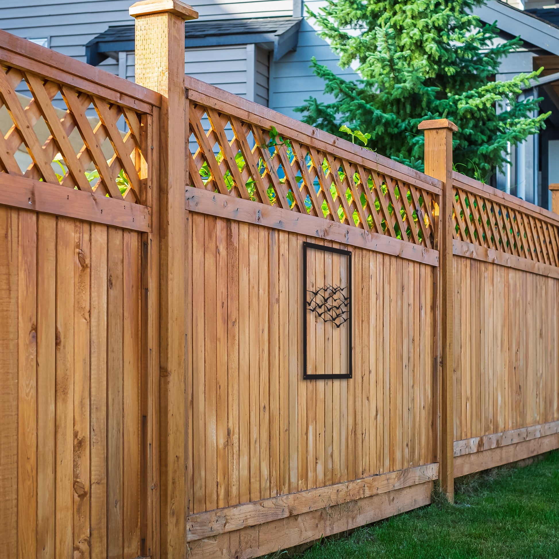 Outdoor garden art with flock of birds silhouette design
