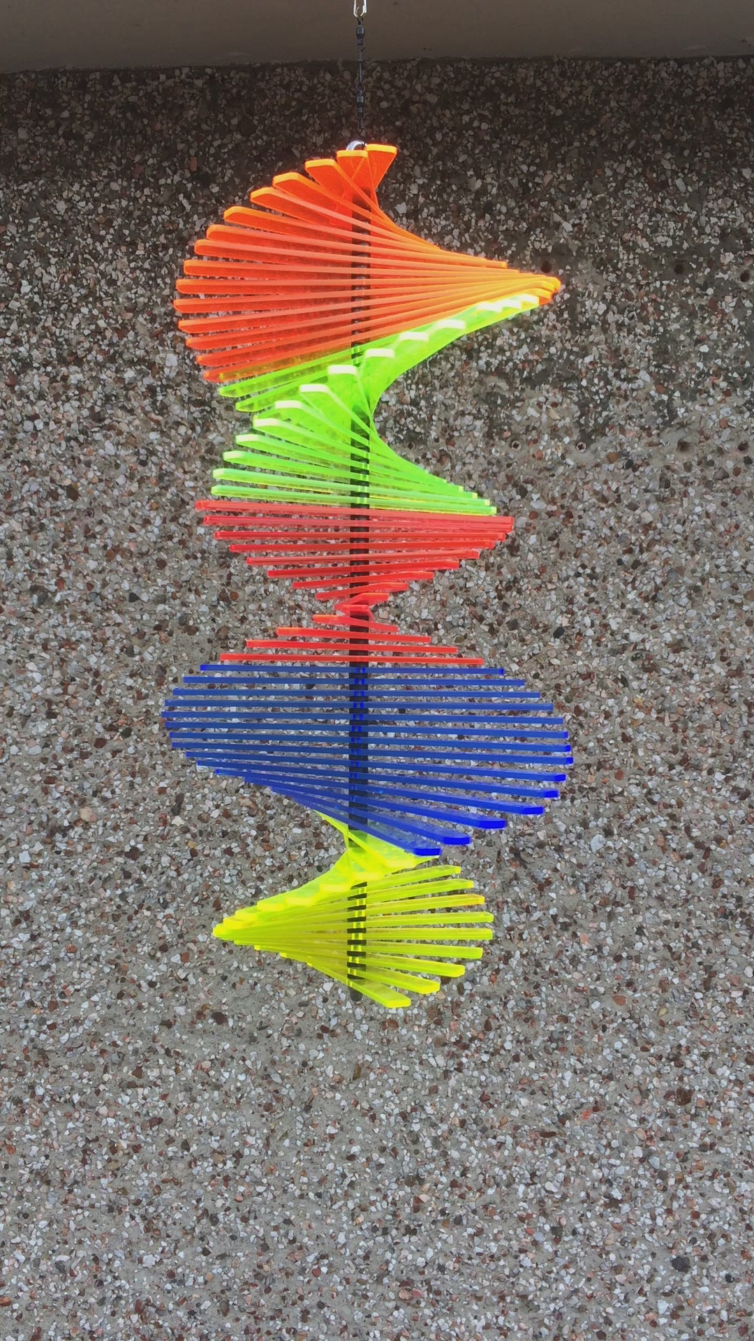 - an approx.: 270mm / 27cm / 10,63'' diameter and approx.: 400mm / 40cm / 15,75'' high wind spinner, made from glowing light collectors in red, orange, yellow, green or blue
