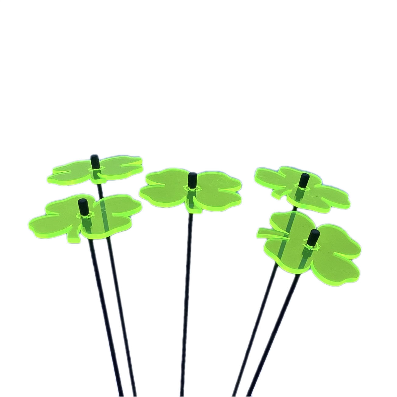 - 5x small SunCatcher Garden Decor Stake Lucky Shamrock in green