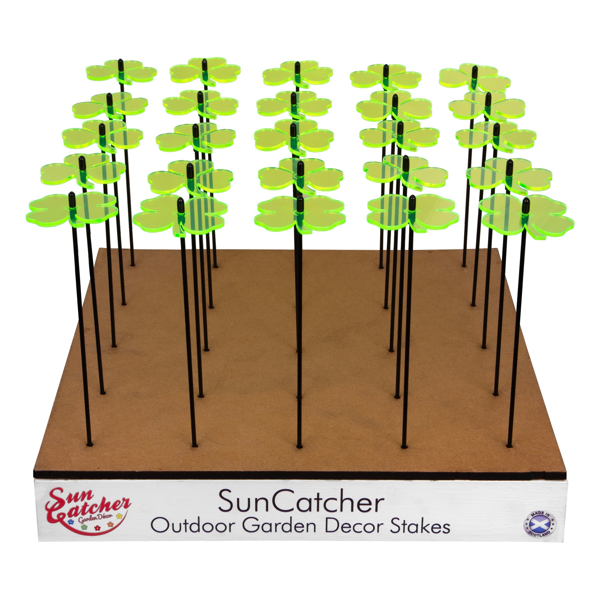 - 20x small SunCatcher Garden Decor Stake Shamrock in green